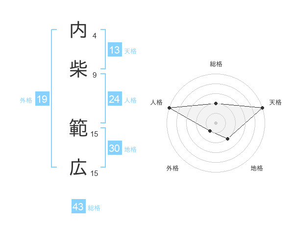 内柴 範広さんの総格は43画の2点!