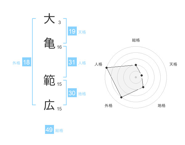 大亀 範広さんの総格は49画の2点!