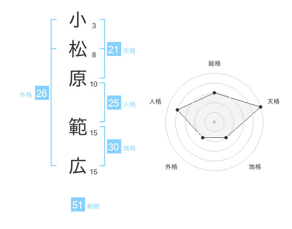 小松原 範広さんの総格は51画の3点!