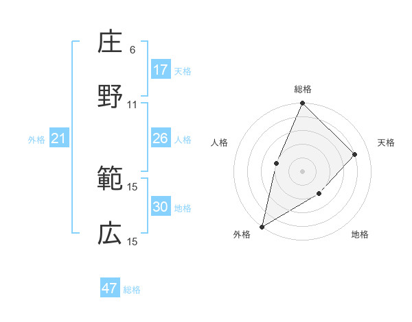 庄野 範広さんの総格は47画の5点!