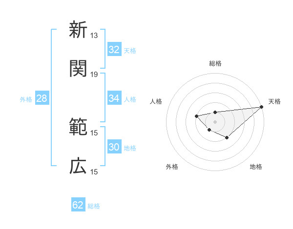 新関 範広さんの総格は62画の1点!