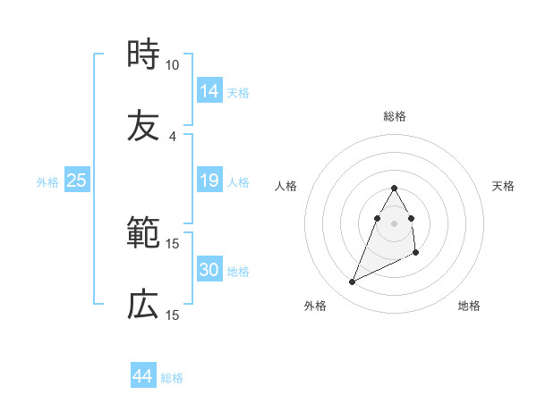 時友 範広さんの総格は44画の2点!