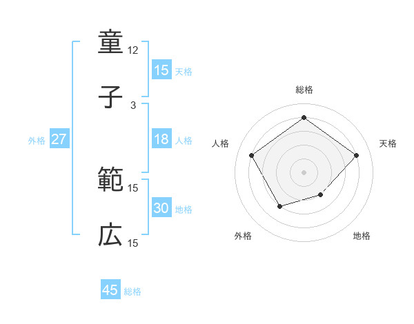 童子 範広さんの総格は45画の4点!