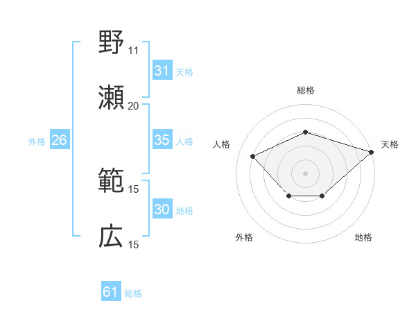 野瀬 範広さんの総格は61画の3点!