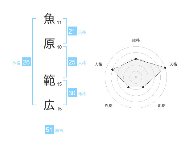 魚原 範広さんの総格は51画の3点!