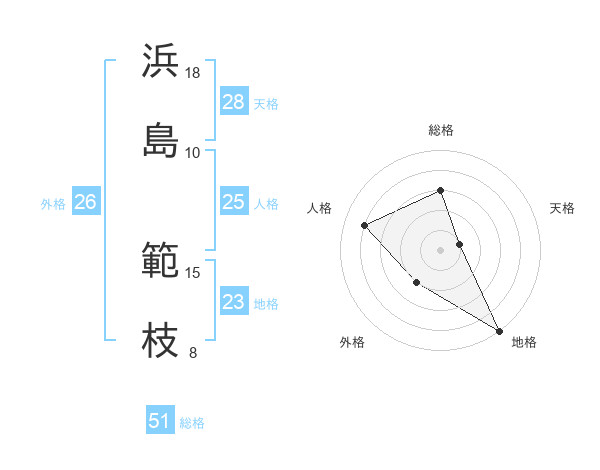 浜島 範枝さんを姓名の画数から五運を鑑定