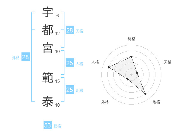 宇都宮 範泰さんを姓名の画数から五運を鑑定