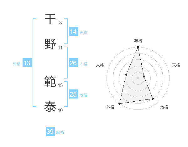 干野 範泰さんの総格は39画の5点!