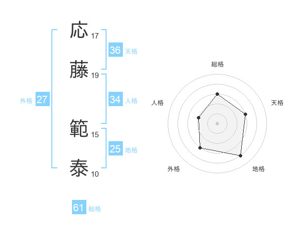 応藤 範泰さんの総格は61画の3点!
