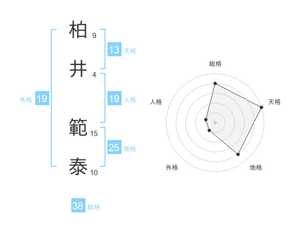 柏井 範泰さんの総格は38画の4点!