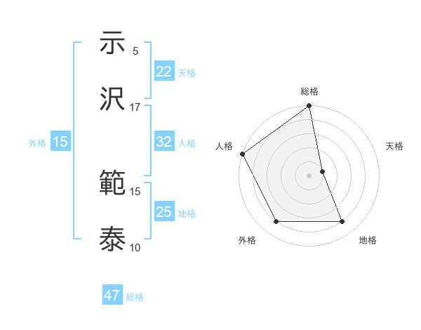 示沢 範泰さんの総格は47画の5点!