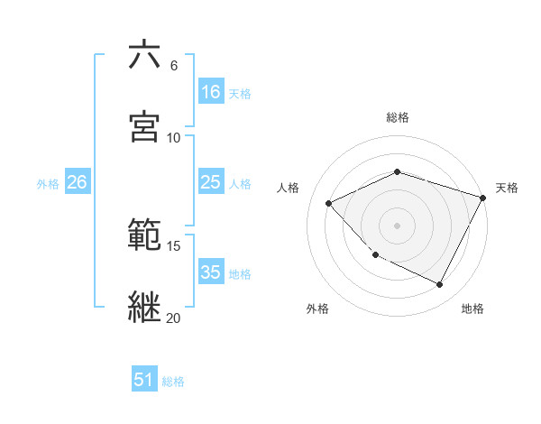 六宮 範継さんの総格は51画の3点!