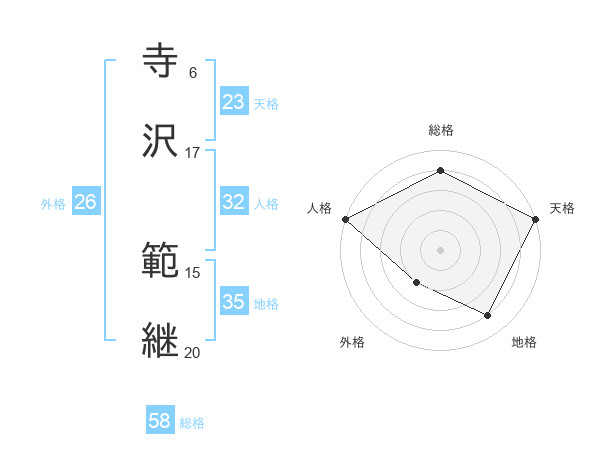 寺沢 範継さんを姓名の画数から五運を鑑定