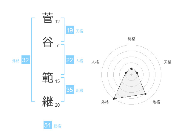 菅谷 範継さんを姓名の画数から五運を鑑定