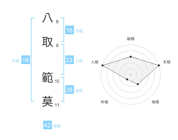 八取 範莫さんの天格は16画の5点!