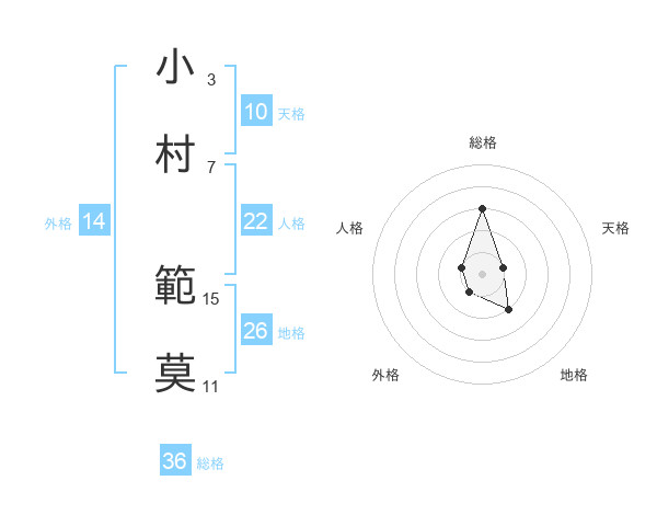 小村 範莫さんの総格は36画の3点!