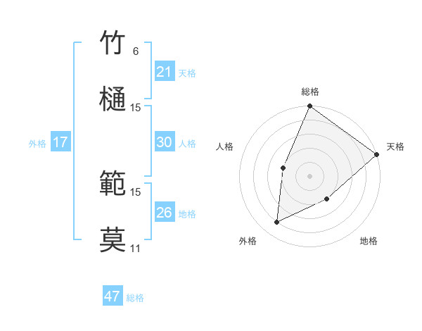 竹樋 範莫さんを姓名の画数から五運を鑑定