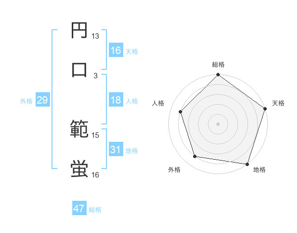 円口 範蛍さんを姓名の画数から五運を鑑定
