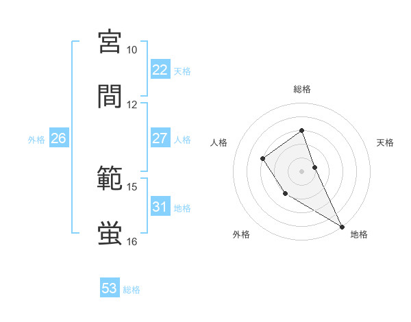 宮間 範蛍さんを姓名の画数から五運を鑑定
