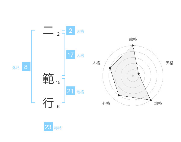 二 範行さんの総格は23画の5点!