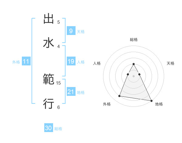 出水 範行さんの総格は30画の2点!