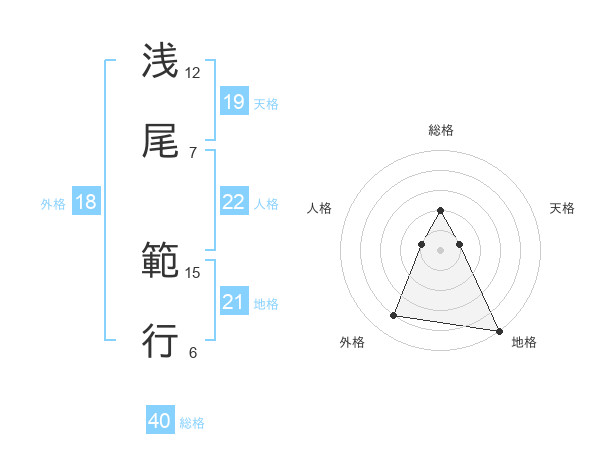 浅尾 範行さんを姓名の画数から五運を鑑定