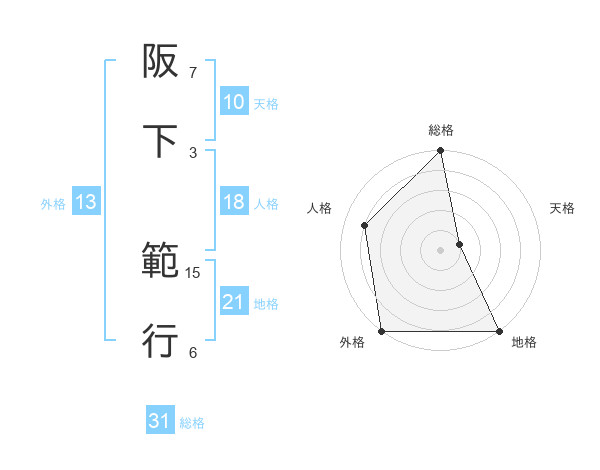 阪下 範行さんの総格は31画の5点!