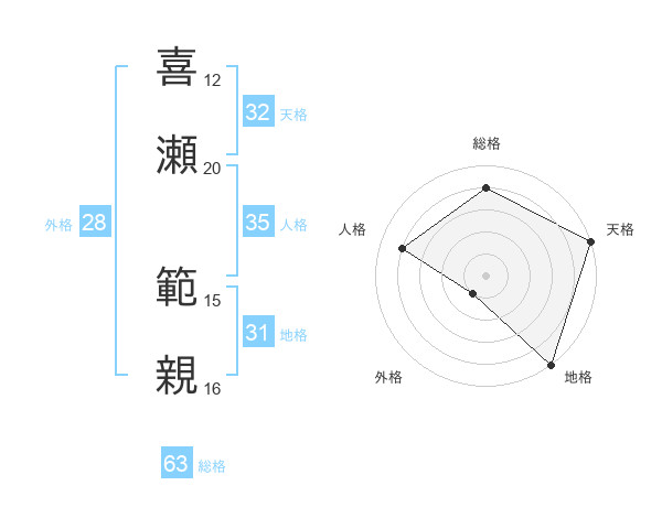 喜瀬 範親さんを姓名の画数から五運を鑑定