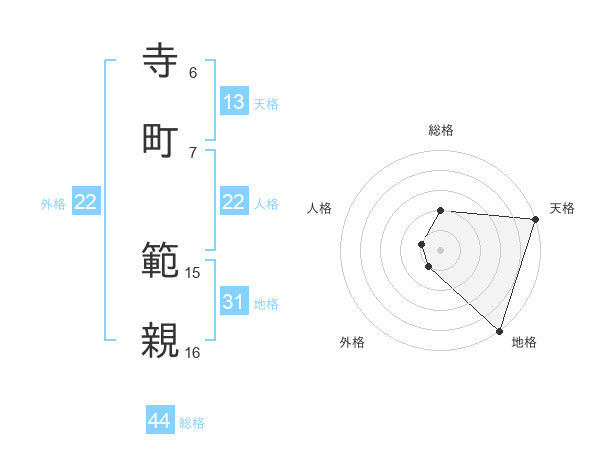 寺町 範親さんの総格は44画の2点!