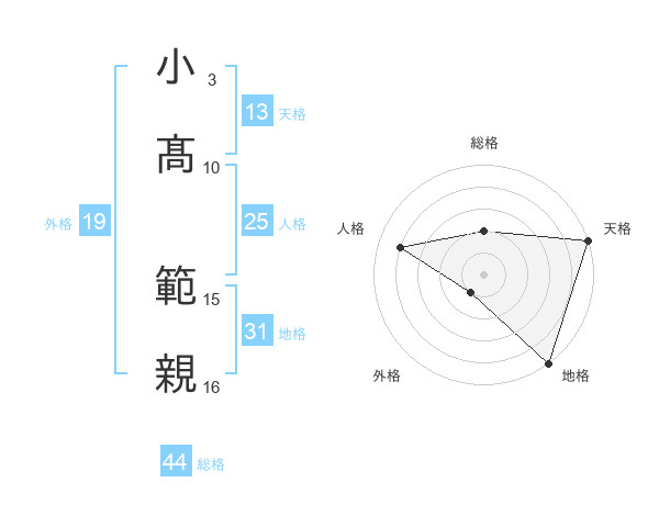 小髙 範親さんの総格は44画の2点!
