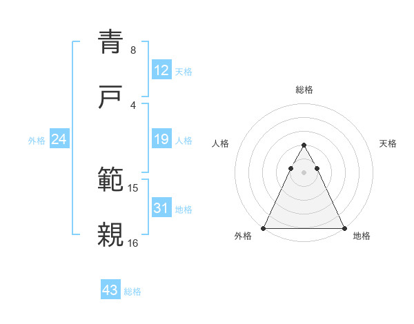 青戸 範親さんの総格は43画の2点!