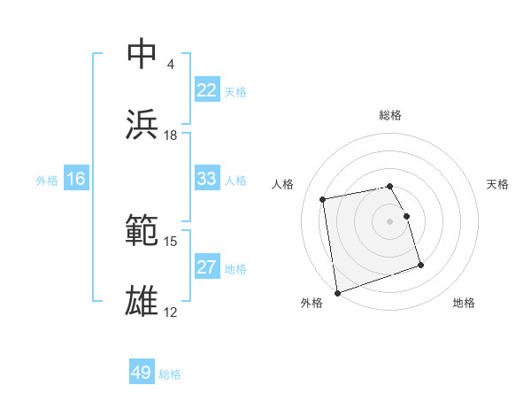 中浜 範雄さんの総格は49画の2点!