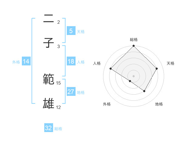 二子 範雄さんの総格は32画の5点!
