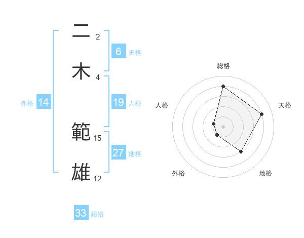 二木 範雄さんの総格は33画の4点!