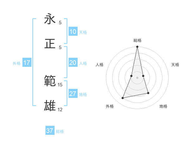 永正 範雄さんの総格は37画の5点!