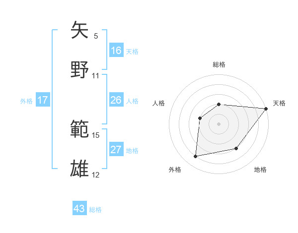 矢野 範雄さんの天格は16画の5点!