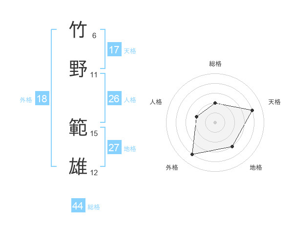 竹野 範雄さんの総格は44画の2点!