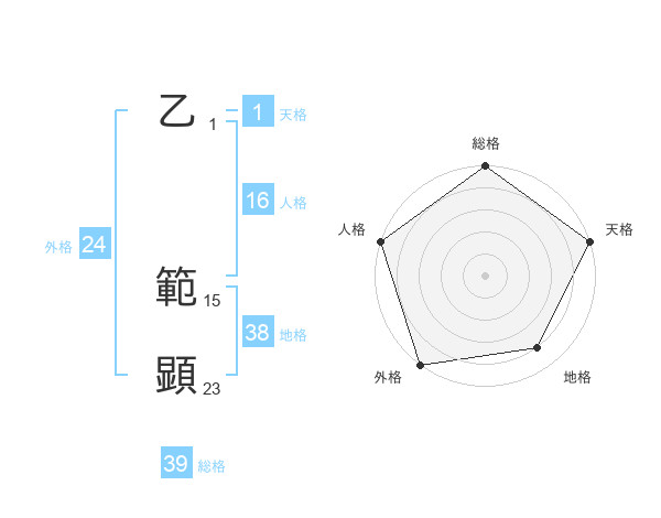 乙 範顕さんの総格は39画の5点!