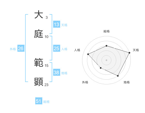 大庭 範顕さんを姓名の画数から五運を鑑定