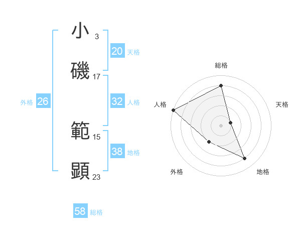 小磯 範顕さんの天格は20画の1点!
