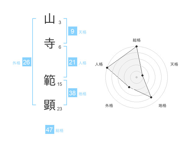 山寺 範顕さんを姓名の画数から五運を鑑定