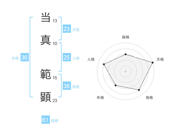 当真 範顕さんの天格は23画の5点!