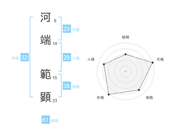 河端 範顕さんの総格は61画の3点!