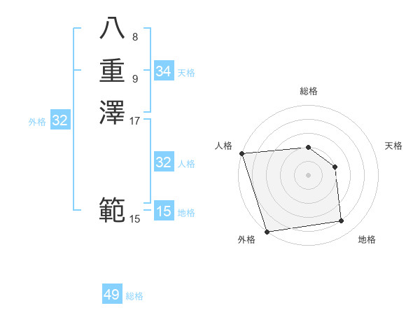 八重澤 範さんの外格は32画の5点!