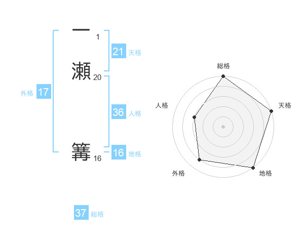 一瀬 篝さんの総格は37画の5点!