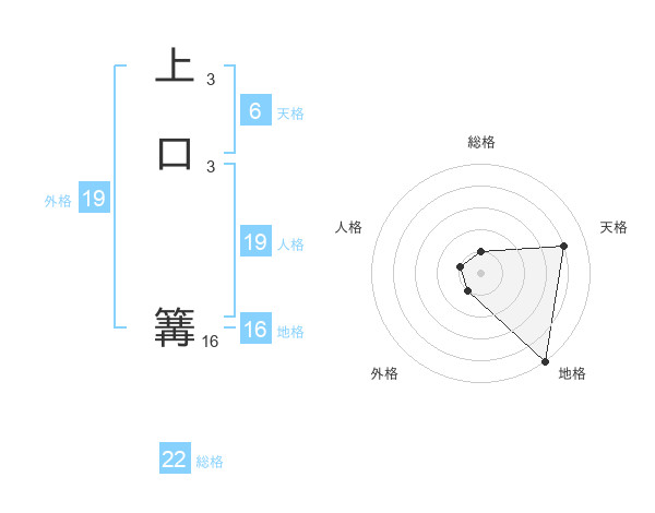 上口 篝さんの総格は22画の1点!