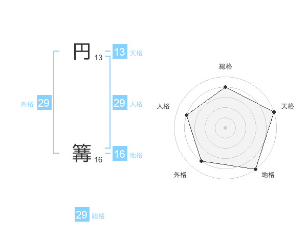 円 篝さんの総格は29画の4点!