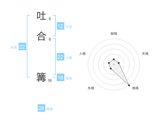 吐合 篝さんの地格は16画の5点!