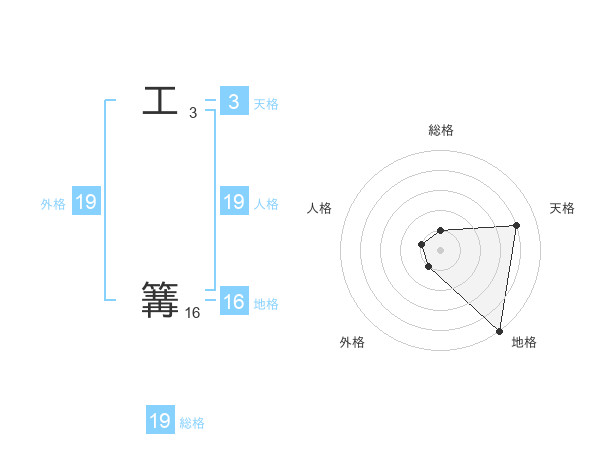 工 篝さんの総格は19画の1点!
