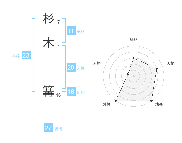 杉木 篝さんの総格は27画の3点!